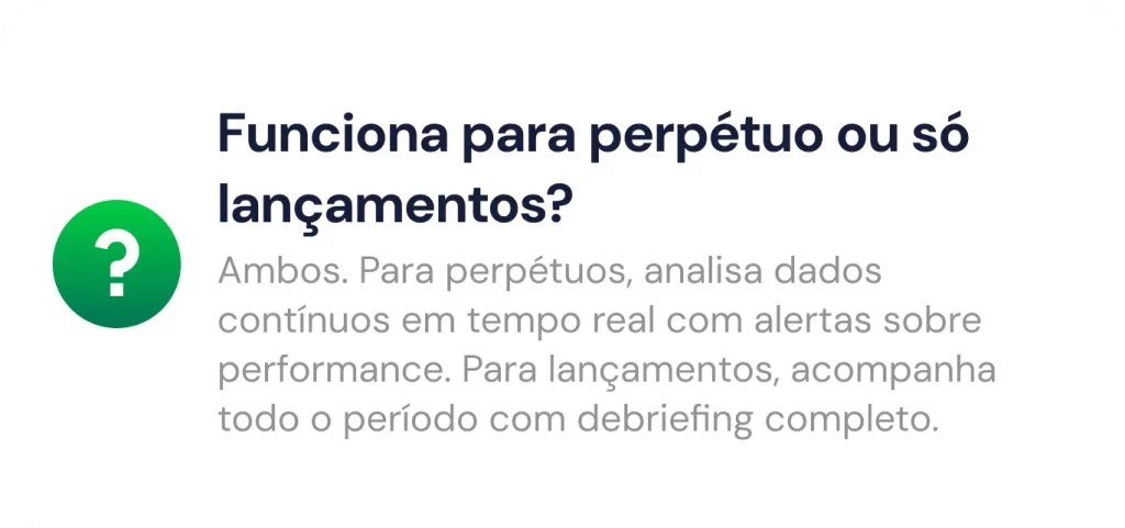 Se você capta leads pagos, funciona. Lançamentos, perpétuos, high ticket, e-commerce, consultoria, agência. Qualquer modelo que use tráfego pago.