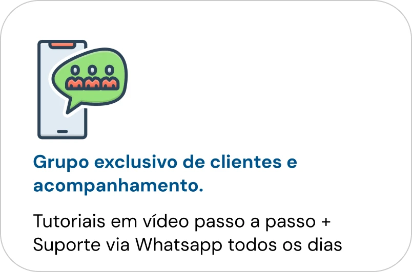 Impossível ficar na mão. Suporte direto comigo (Felipe) por WhatsApp, plantões semanais, grupo exclusivo de clientes. Se não conseguir, seu dinheiro de volta
