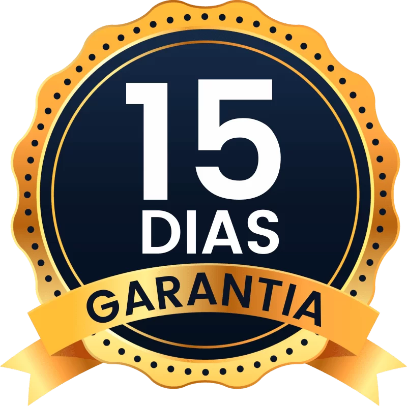 15 dias de garantia total. Se não funcionar, devolvemos 100% do seu dinheiro. Sem perguntas, sem burocracia.